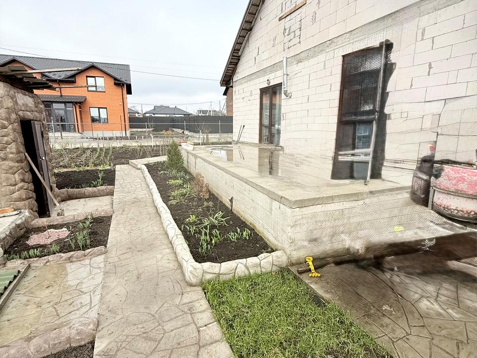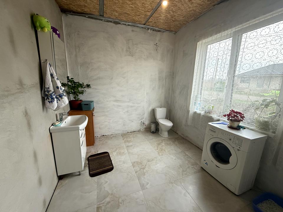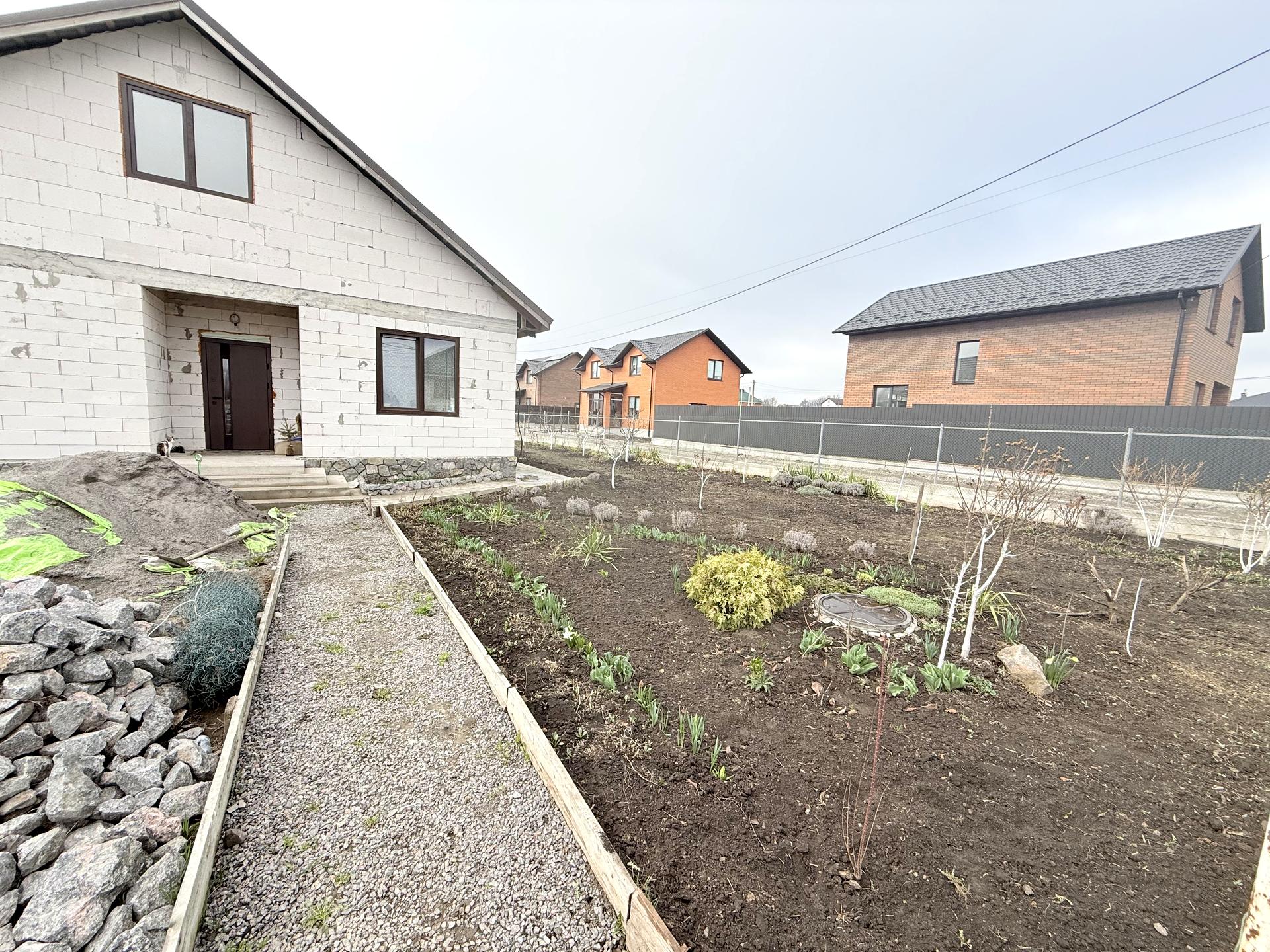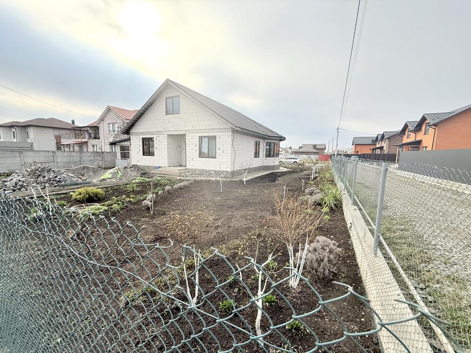 Будинок, 1 поверх, 3 кімнати. Матеріал стін - блочно-цегляний, фундамент будинку - залізобетон. Під'їзд до будинку - грунт. Площа ділянки 8 соток. Висота стелі 2.7 метра. Покриття підлоги: покриття підлоги - плитка, покриття підлоги - дерево. В будинку 1 балкон. Тип кухні - кухня-студія. Є підвал. У будинку є Телевізор, Підігрів підлоги, Пральна машина, Душова кабіна, Холодильник, Газон, Сад/город, Зона мангалу, Гараж, Тераса. Будинок побудований в 2024 році. Своя каналізація. Загальний стан будинку - Частковий ремонт. Газ централізований на ділянці. Холодна вода - свердловина. Гаряча вода - електричний бойлер. Опалення котел електричний. Кількість санвузлів: 2. Покриття даху - металочерепиця. Тип автономної електроенергії: генератор. Інтернет оптоволоконний. Працює без світла - резервне живлення (акумулятори/генератор). Кількість паркомісць: 2. Кухонна плита електрична. Кількість спален: 2. Комісія за послуги 5 %