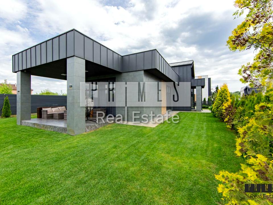 Новий стильний будинок, який розташований на березі Дніпра з власним пляжем та пірсом.