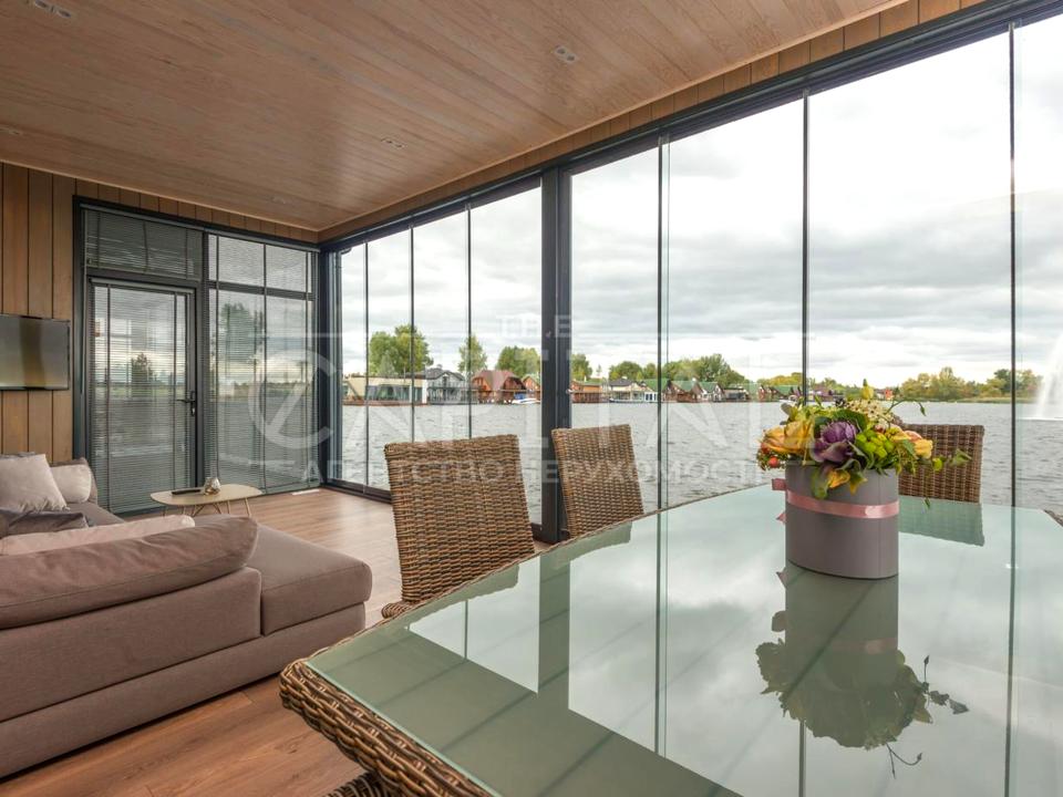 Сучасний одноповерховий будинок на плаву з плоским дахом, площею
