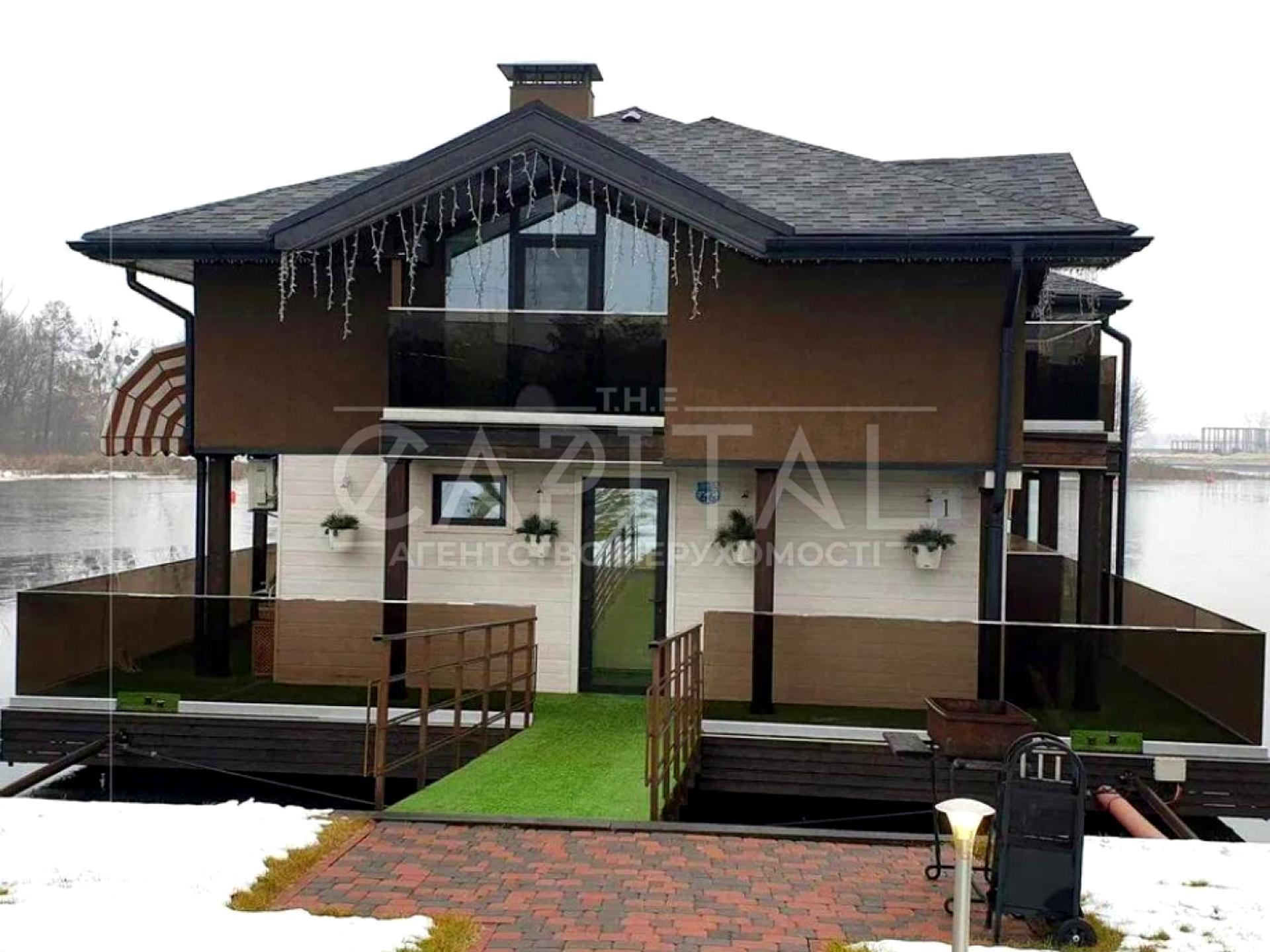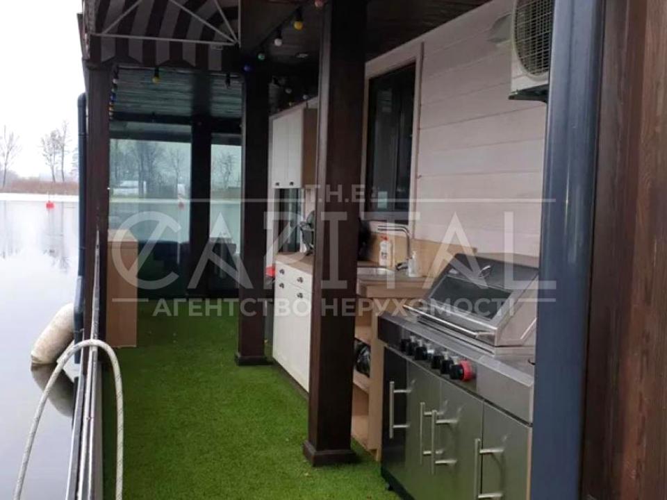 Загальна площа плав-дачі 200 м², два поверхи, понтон навколо будинку. У будь-яку пору року проживання тут буде комфортним — є кондиціонери та електроопалення.