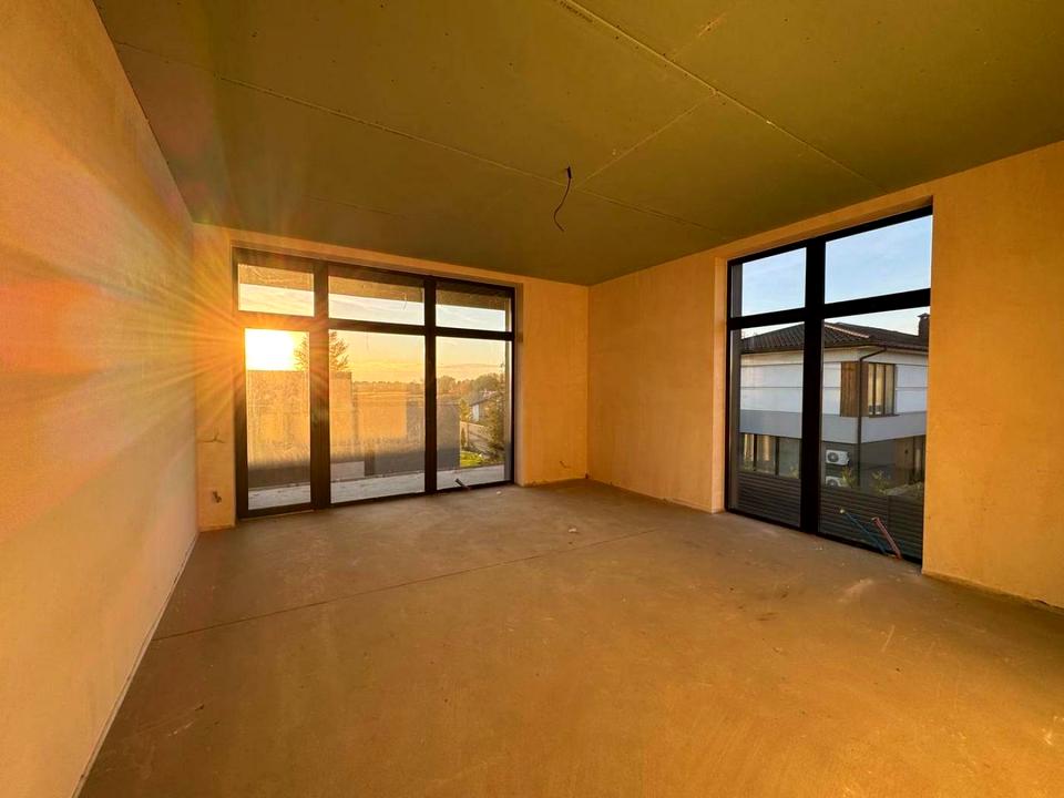 У будинок виконане чистове оздоблення (стяжка, штукатурка, теплі поли та електрика), а також заведена вода (сверловина), каналізація (септик), електроенергія та є можливість провести ГАЗ