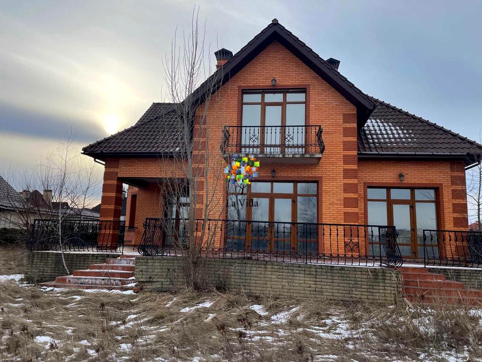Будинок з червоної цегли, із залізобетонним перекриттям, кровля- керамічна натуральна черепиця TONDACH. Бетонні сходи. Стіни-цегла марки М-72, фасад СБК. Фасад і дах будинку утеплений, просторі кімнати з високими стелями, будинок із другим світлом, із другого поверху вид на озеро «Золоче», з ділянки власний вихід до озера.