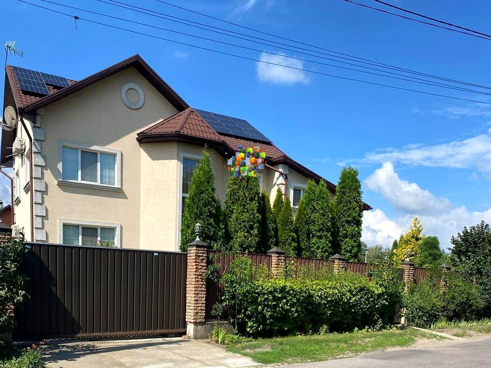 Будинок, 2 поверхи, 5 кімнат. Матеріал стін - цегляний. Під'їзд до будинку - асфальт. Площа ділянки 14 соток. Загальний стан будинку - З ремонтом. Гаряча вода - газовий котел. Опалення котел газовий. Тип автономної електроенергії: cонячна електростанція. Працює без світла - вода, газ, опалення, інтернет, резервне живлення (акумулятори/генератор). Кухонна плита газова. Кількість спален: 5. Без комісії