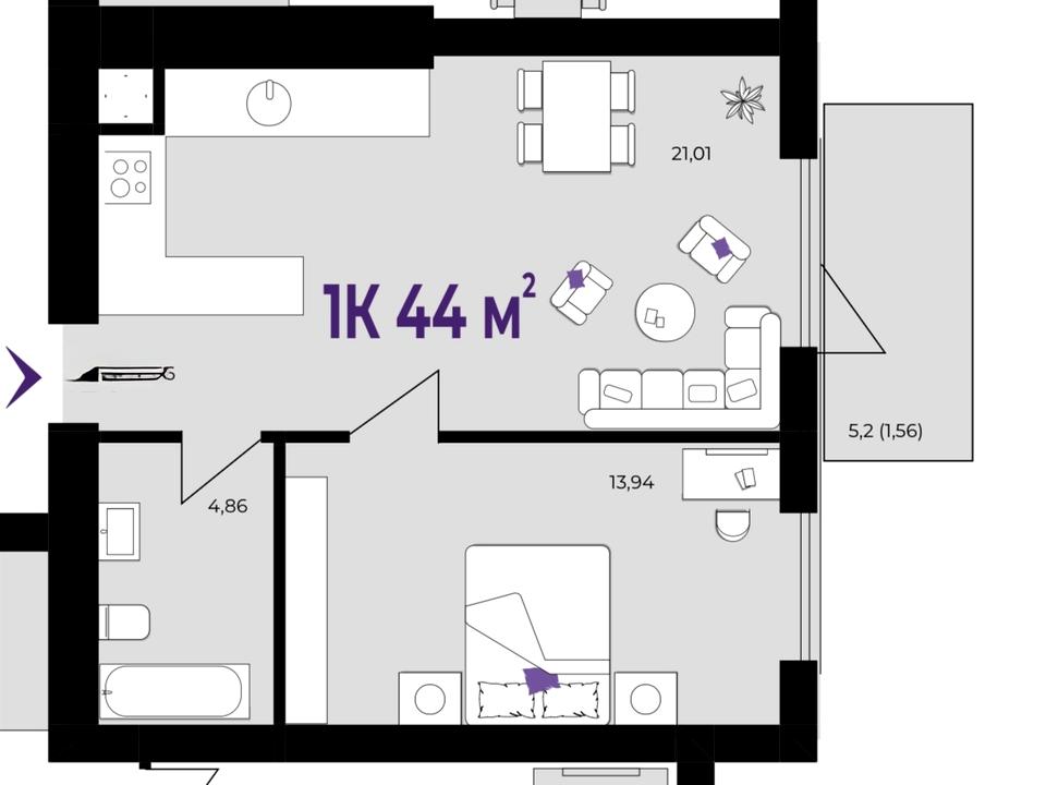 • Світла однокімнатна квартира з правильним плануванням
