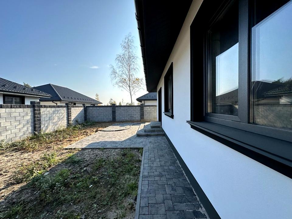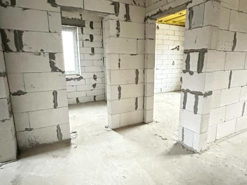 Будинок, 1 поверх, 3 кімнати. Матеріал стін - газоблок. Під'їзд до будинку - асфальт. Площа ділянки 4 сотки. В будинку немає балконів. Тип кухні - кухня-студія. Немає підвалу. Своя каналізація. Загальний стан будинку - Без ремонту. Газ природний. Холодна вода - свердловина. Гаряча вода - газова колонка. Опалення котел газовий. Кількість санвузлів: 2. Покриття даху - металочерепиця. Інтернет оптоволоконний. Кількість паркомісць: 2. Кількість спален: 3. Без комісії