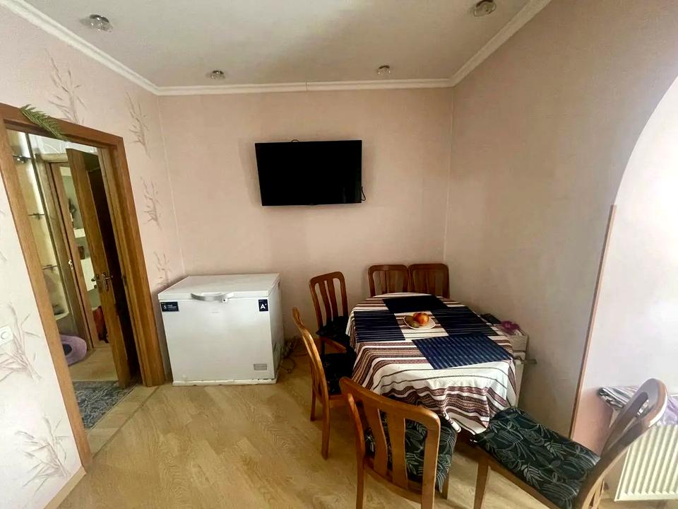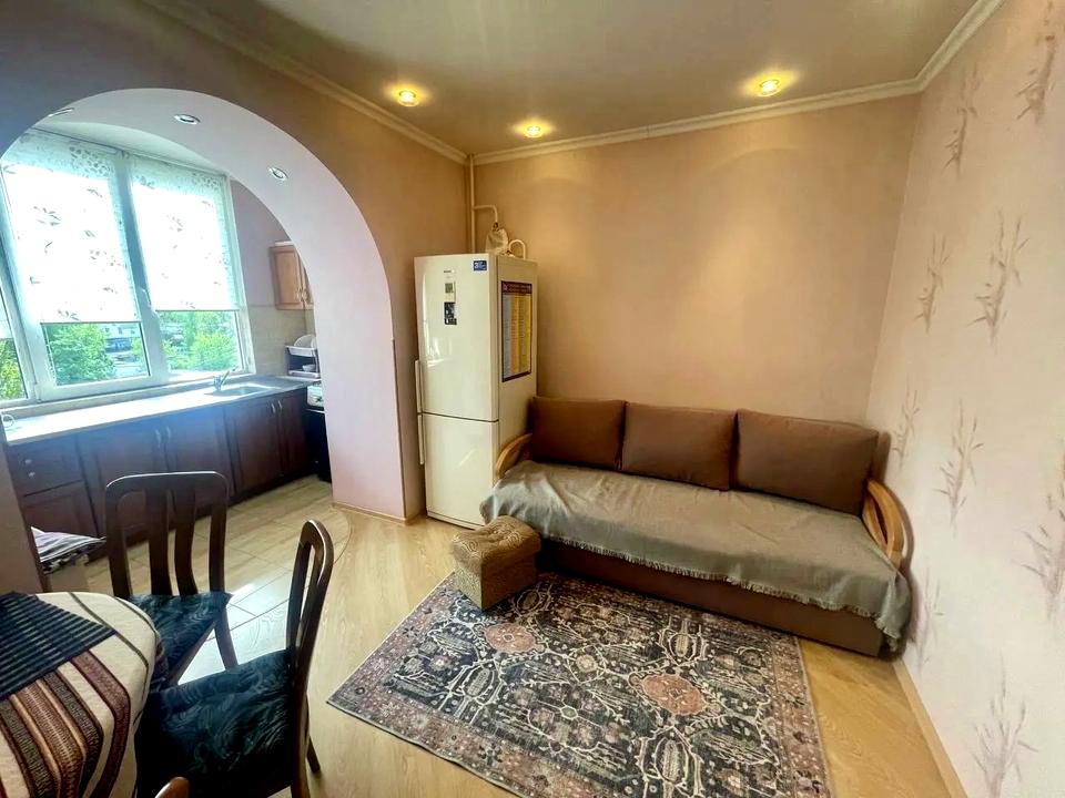 У вітальні — зручний розкладний диван, який легко стає додатковим спальним місцем.