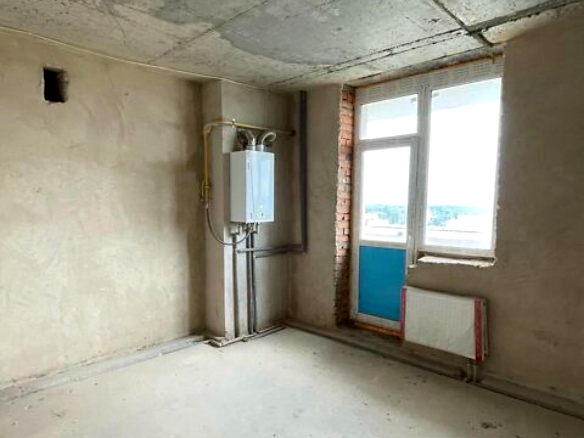 Стіни поштукатурені, зроблена стяжка, розведено опалення і встановлені батареї.