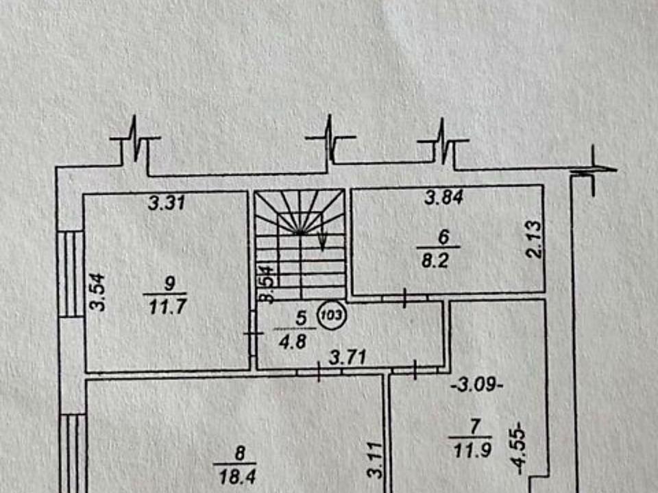житлові кімнати - 18,4м2, 11,9 м2, 11,7 м2