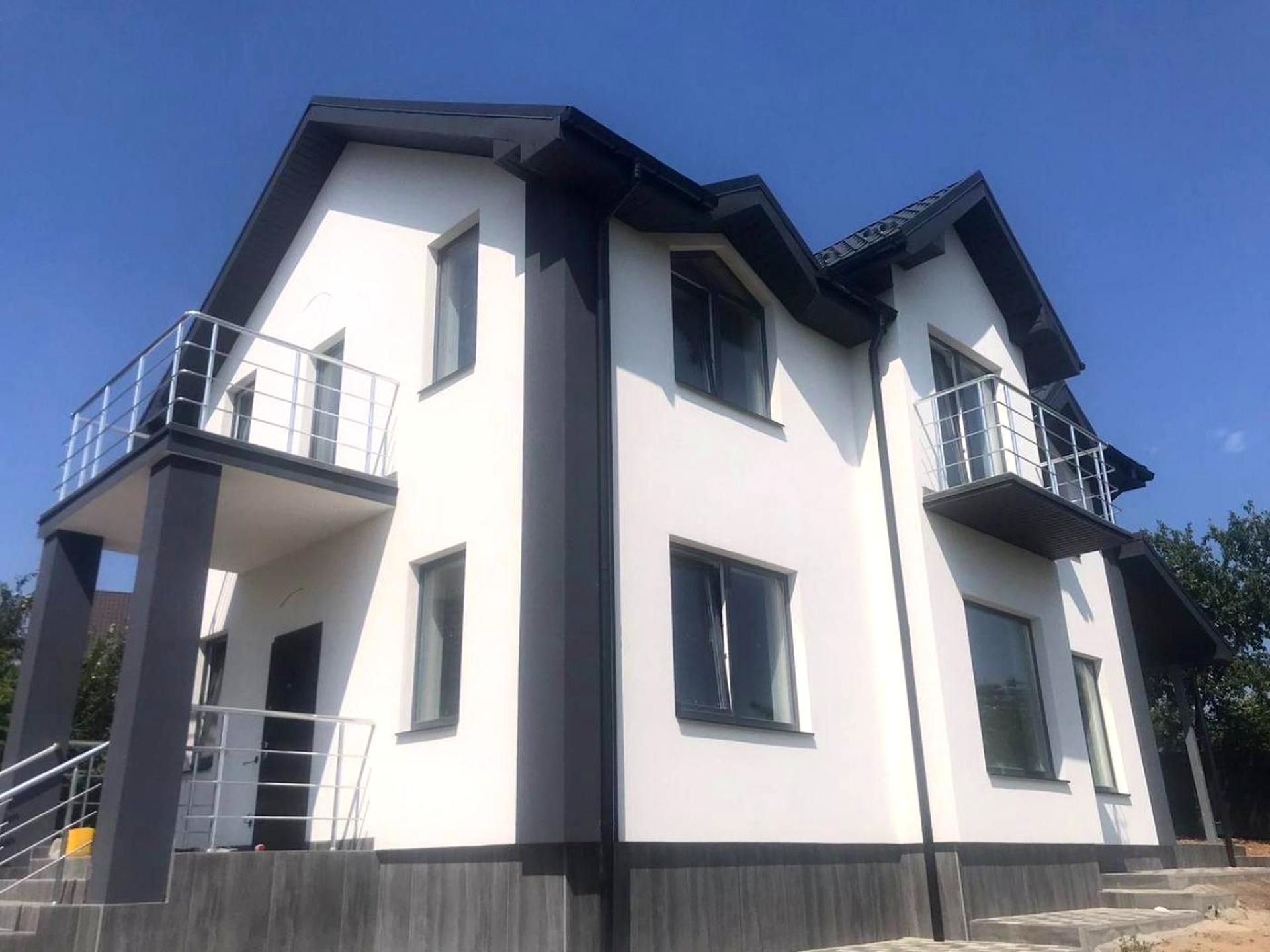 Будинок, 2 поверхи, 5 кімнат. Матеріал стін - газоблок, фундамент будинку - залізобетон. Площа ділянки 10 соток. Висота стелі 3 метра. В будинку 2 балкони. Тип кухні - кухня-студія. Загальний стан будинку - Без ремонту. Кількість санвузлів: 3. Покриття даху - металочерепиця. Кількість паркомісць: 3 і більше. Кількість спален: 4. Комісія за послуги 5 %