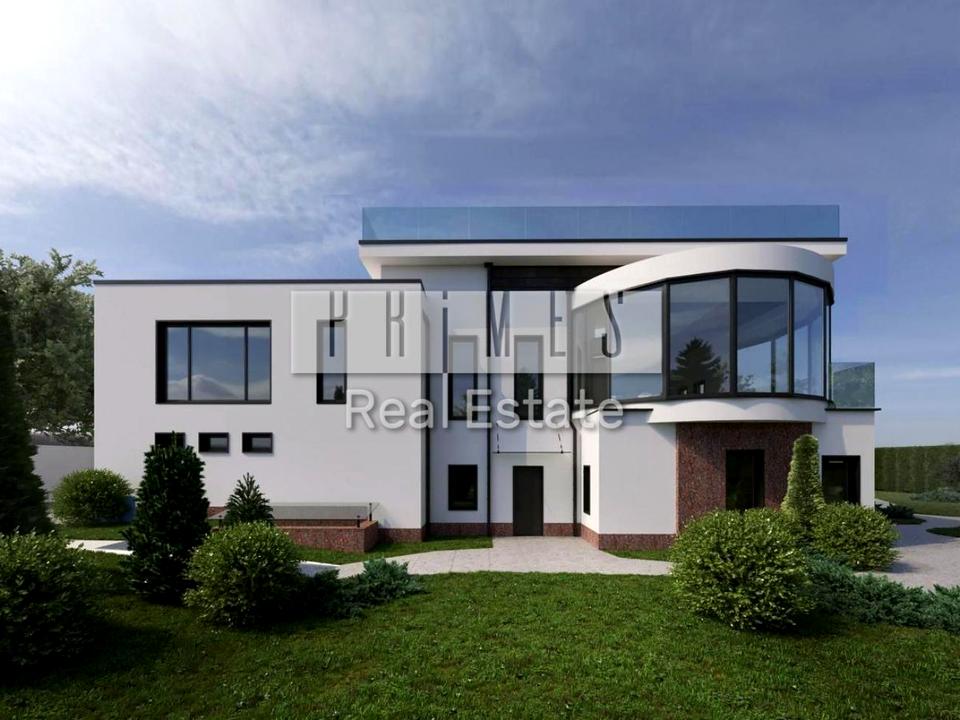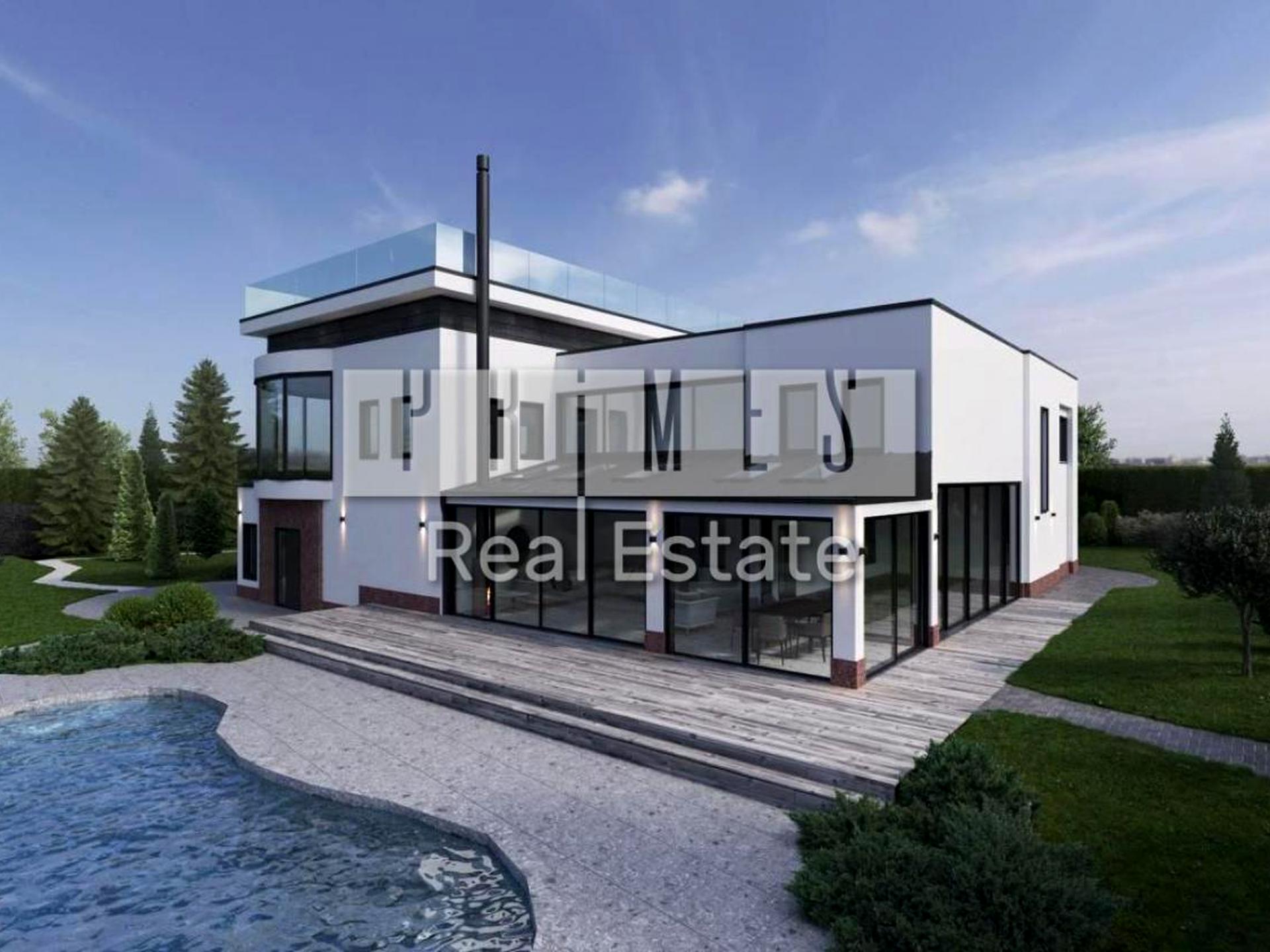 Перший поверх: гостєва з каміном, з великою розсувною скляною системою та виходом на зовнішню терасу до басейну. Панорамна кухня з якої можна вийти на великий балкон-терасу, та насолоджуватися чудовим видом ланшафту подвір'я. Кімната для гостей з санвузлом та господарською кімнатою.