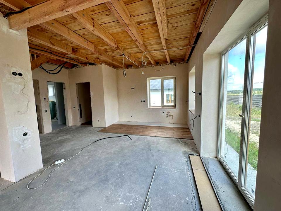 Будинок, 2 поверхи, 3 кімнати. Під'їзд до будинку - грунт. Площа ділянки 5 соток. Планування кімнат Роздільне. Газу немає. Холодна вода - водопровід, гаряча вода - електричний бойлер. Опалення котел електричний. Спільний санвузол. Є підігрів підлоги. Вікна металопластикові, нові. Покриття даху - металочерепиця. Немає огорожі. Немає підвалу. Своя каналізація. Загальний стан будинку - Незавершений ремонт. Терміново, Прямий продаж, Вільна. Зовнішнє утеплення стін. Працює без світла - вода, інтернет. Без комісії