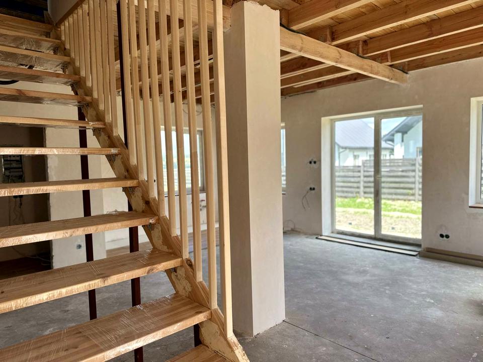 Деревянная лестница на 2-й этаж.