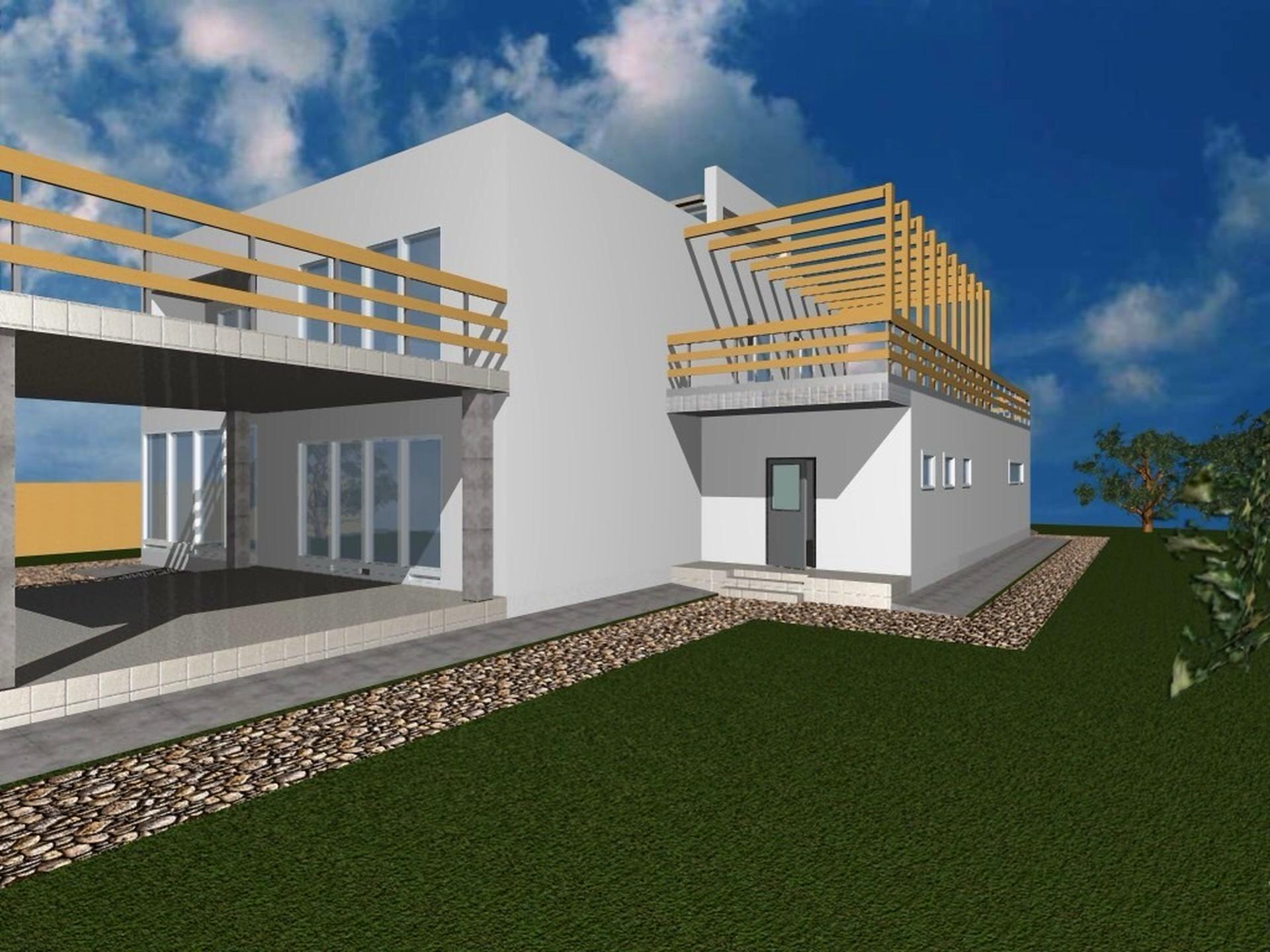Асфальтный подъезд прямо к гаражу, участок граничит только с одним соседом, с одной стороны поле с двух сторон дорога. Дом строил идля себя, качественны бетон и пеноблок «аерок». 2 поверхи, 230м, 5 кімнат, 2 сан.вузли.Монолитные перекрытие, плоская кровля, два стояка канализации, ливнеква скрыта в доме с утеплением. Скважина 55м., 15кВт света, по периметру участка залит бетонный фундамент для забота.