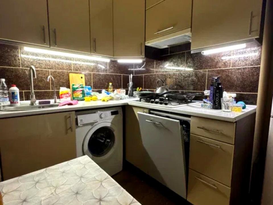 Кухня укомплектована пральною машинкою, посудомийкою, холодильником та газовою поверхнею. На останньому фото є планування квартири для детального ознайомлення.