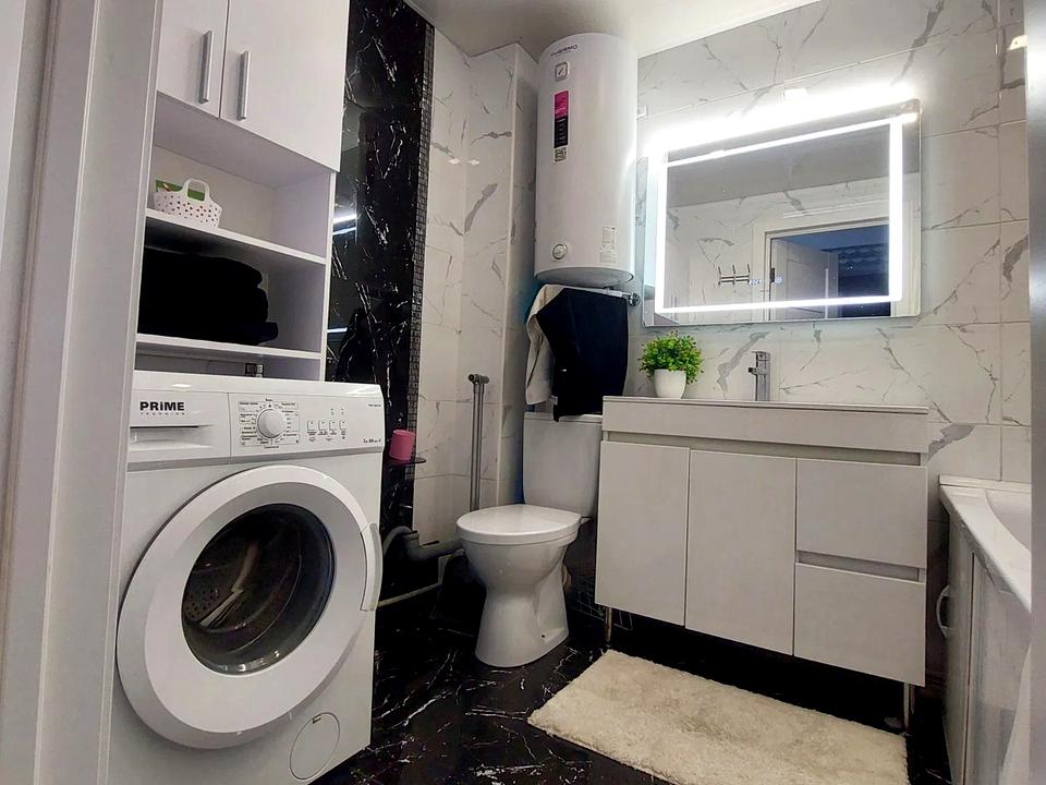 Об'єднанний санвузол з новою сантехнікою. Залишається бойлер 80 л та пральна машинка, кондиціонери, 2 телевізори.