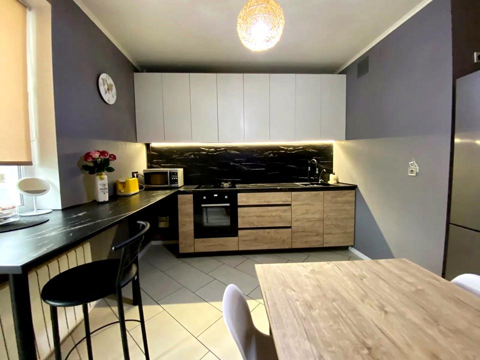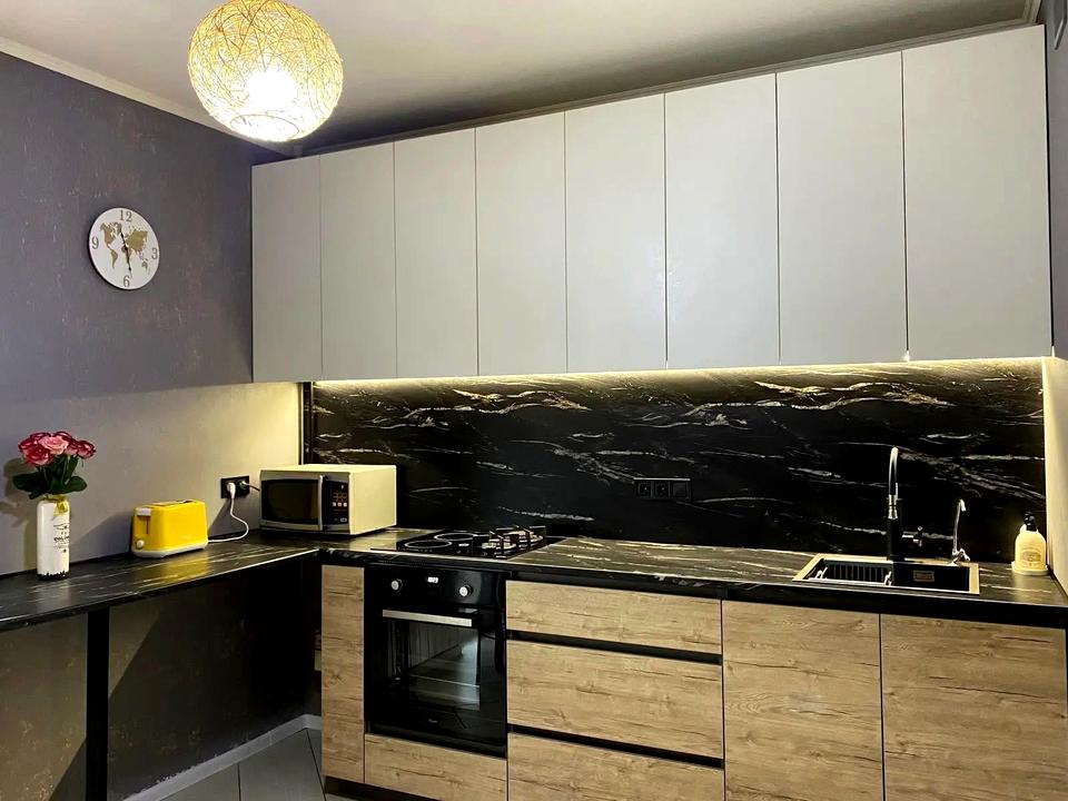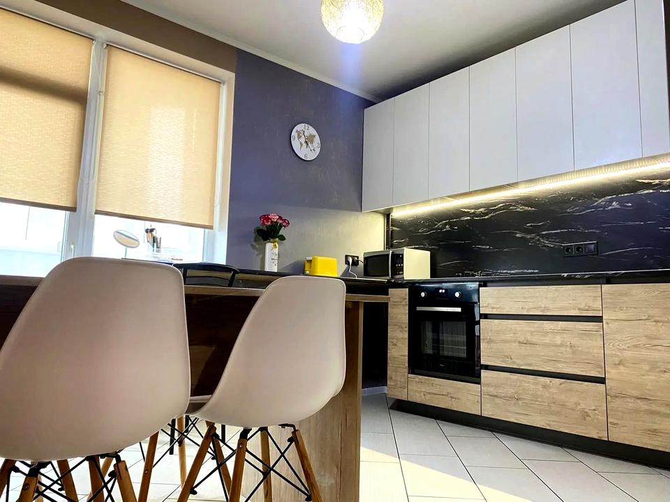 Комбінована варильна поверхня (індукція+газ), електрична духова шафа Whirlpool, бойлер на 80л, нова пральна машина Gorenje. Вбудовані великі шафи, багато місця для зберігання речей. Деякі меблі та техніка залишаються по домовленості.