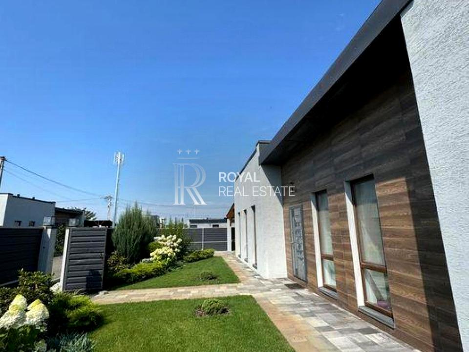 Площа будинок 120 м2, три спальні, кухня - вітальня, велика тераса та сад з ландшафтним дизайном, мангальна зона.