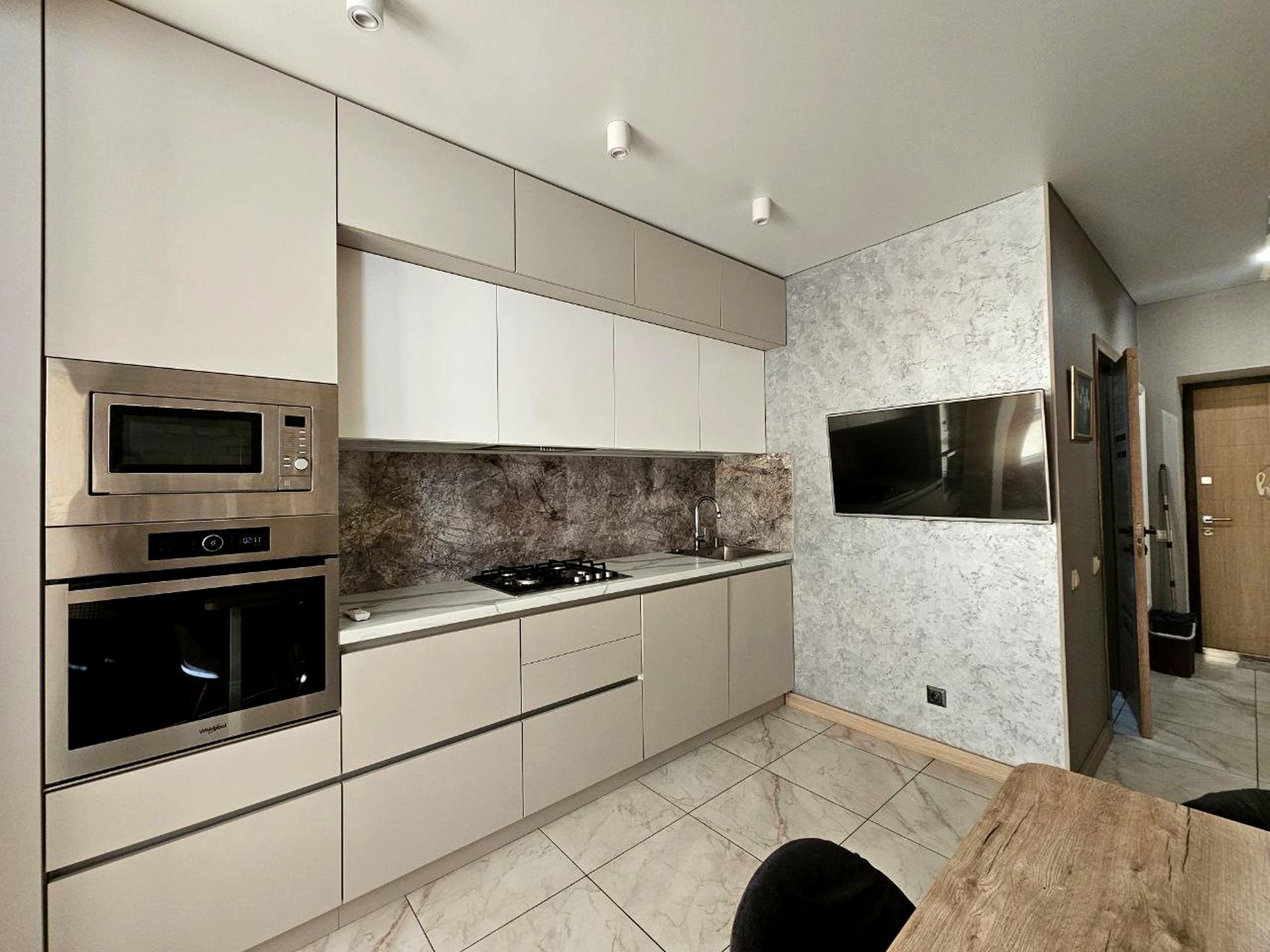 В квартирі 1 кімната. Квартира перепланована, планування кімнат Суміжно-роздільна. Є газ, кухонна плита газова. Гаряча вода - газовий котел. Опалення індивідуальне - . Суміщений санвузол, Туалет/ванна. Є сантехніка. Є балкон. Вікна металопластикові. В квартирі є . Загальний стан квартири - З ремонтом. Поруч є дитсадок, школа, зупинки, розважальні заклади, супермаркет. Працює без світла - вода, газ, опалення, інтернет. Комісія за послуги 50 %