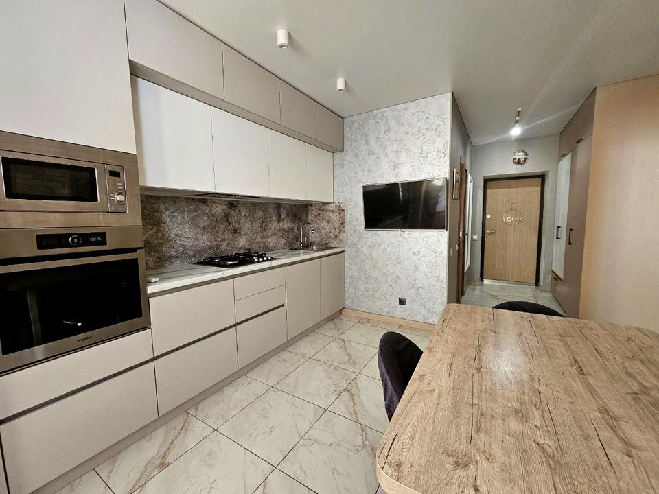 Здача в оренду однокімнатної квартири в районі Крошні в новобудові ЖК Мрія на Покровській. Спальна зона розділена на дві частини. В якій чудово можна розмістити дитину з окремим диваном та робочим місцем. А також для батьків передбачений кутовий диван і шафа. В квартирі Є посудомийка, мікрохвильовка, холодильник, кондиціонер, телевізори, пралка, варильна поверхня, духовка, два дивани. З кухні є лоджія де встановлено холодильник і газовий котел. Також в квартирі є підігрів підлоги. Можна сімʼї з дитиною. Без тварин. На довгий термін. 17000+17000 гарантійний платіж +8500 послуги ріелтора.
