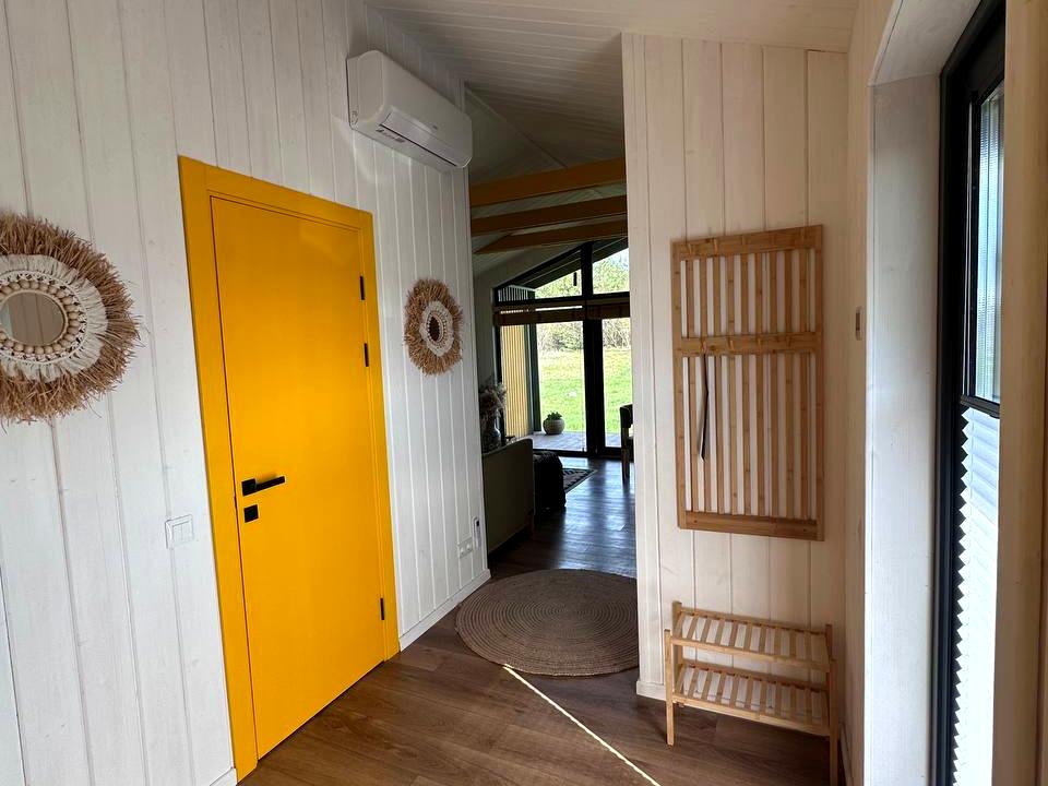 Будинок обігрівається електричною теплою підлогою і конвекторам в спальні.