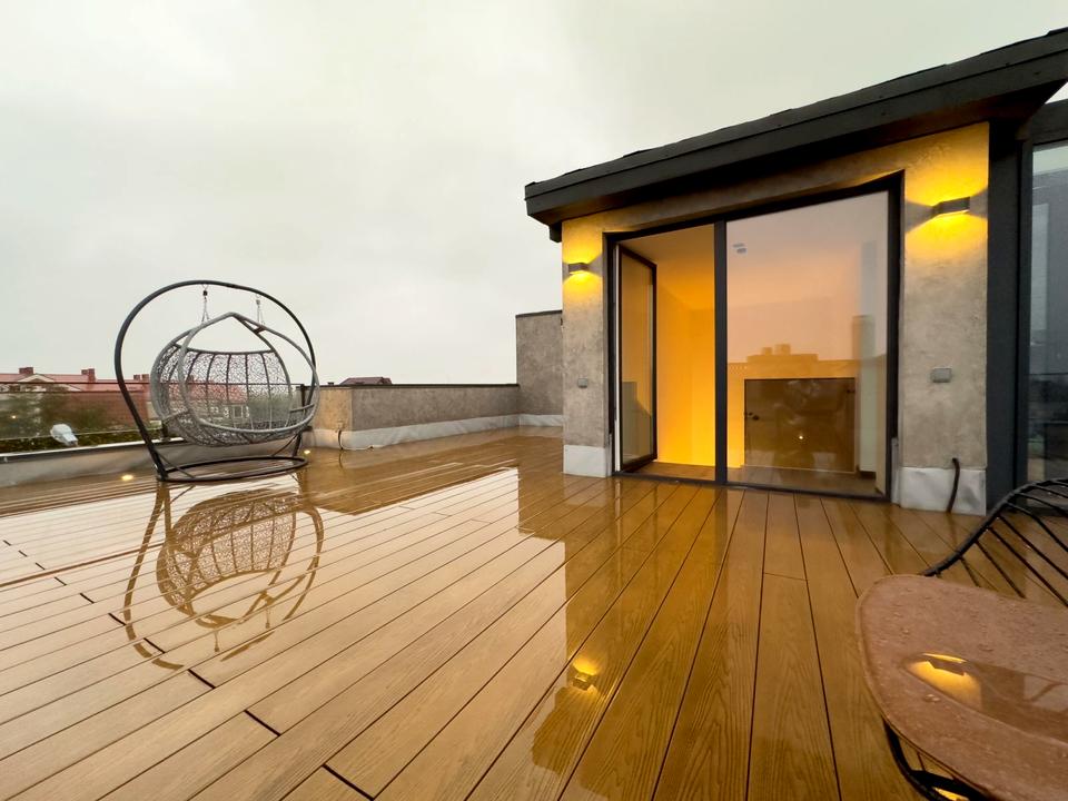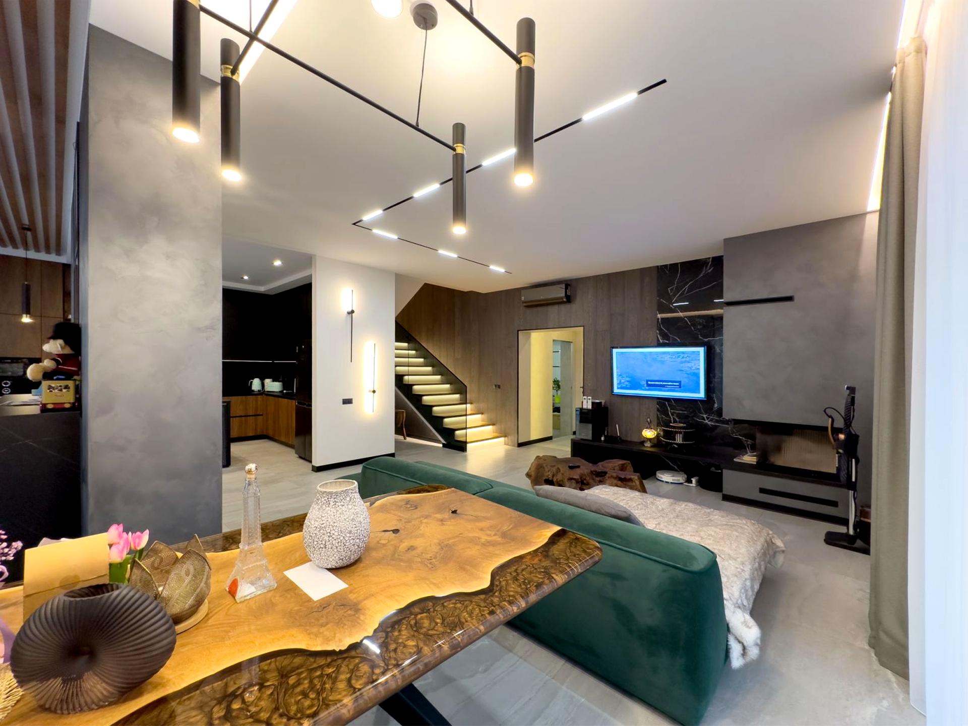 Дуплекс, 3 поверхи, 4 кімнати. Площа ділянки 3 сотки. Планування кімнат Роздільне. У будинку є Телевізор, Підігрів підлоги, Камін, Кондиціонер, Пральна машина, Сушильна машина, Душова кабіна, Ванна, Джакузі, Холодильник, Мікрохвильовка, Посудомийна машина, Сигналізація, Газон, Зона мангалу, Тераса. Будинок побудований в 2020 році. Загальний стан будинку - З ремонтом. Без комісії