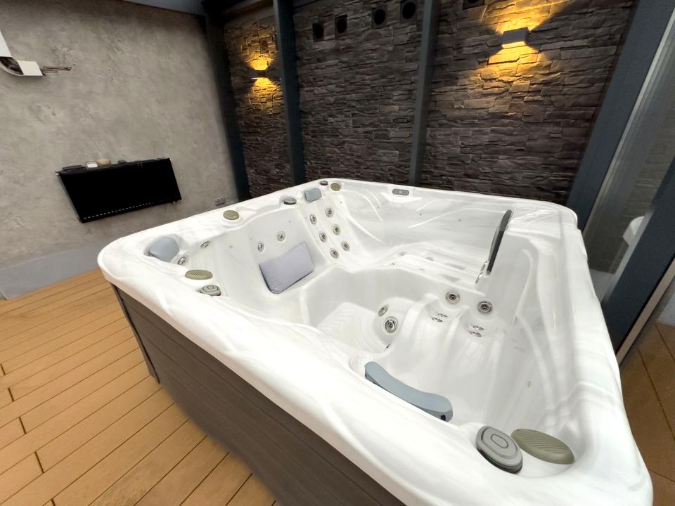 На третьому поверсі: Приміщення з великим джакузі під скляним накриттям, вихід на терасу з гарним краєвидом.